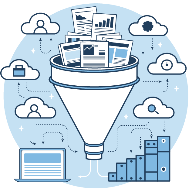 Con la piattaforma MediaCognition, analizziamo diverse fonti informative (giornali, social media, analisi finanziarie) in modo automatizzato utilizzando il processo ETL (Extract, Transform and Load).